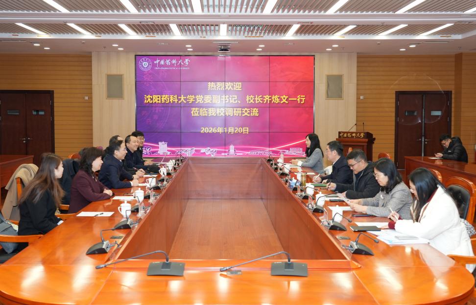 1月20日上午,沈阳药科大学党委副书记、校长齐炼文一行来访我校。校党委书记戴建君主持座谈交流会,相关职能部门负责人参加会议。